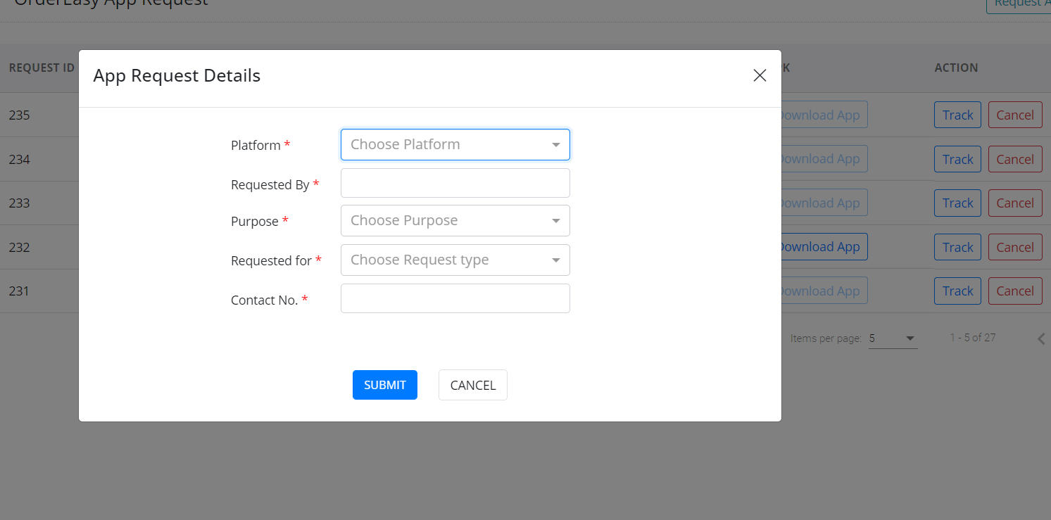 The app request option in the OrderEasy Integration portal lets you request an app update/upload without leaving the OrderEasy Integration portal or having to contact the GoFrugal team. Also, you can track the status of your updates directly within the integration portal. Raise app requests from the Integration portal and save time and effort.