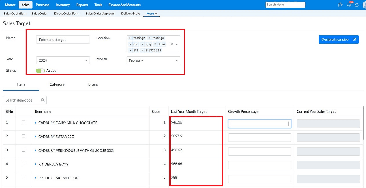 Now we can see the "Last Year Month Target" based on Item, Category or Brand.
