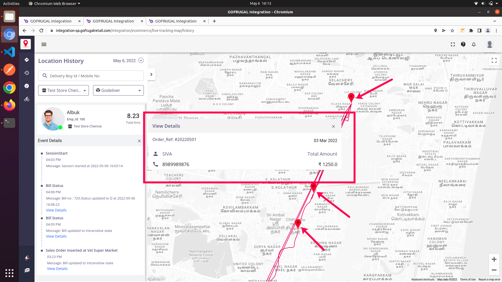You can now track the history of the events performed by your delivery boys with the location of the event performed by following the below steps: