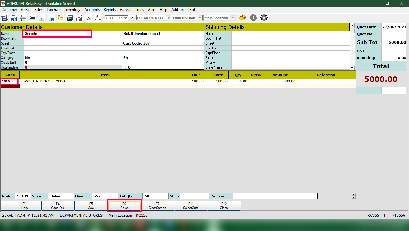 Step 2: Select customer, put the items [In our case item code 1989] and save.