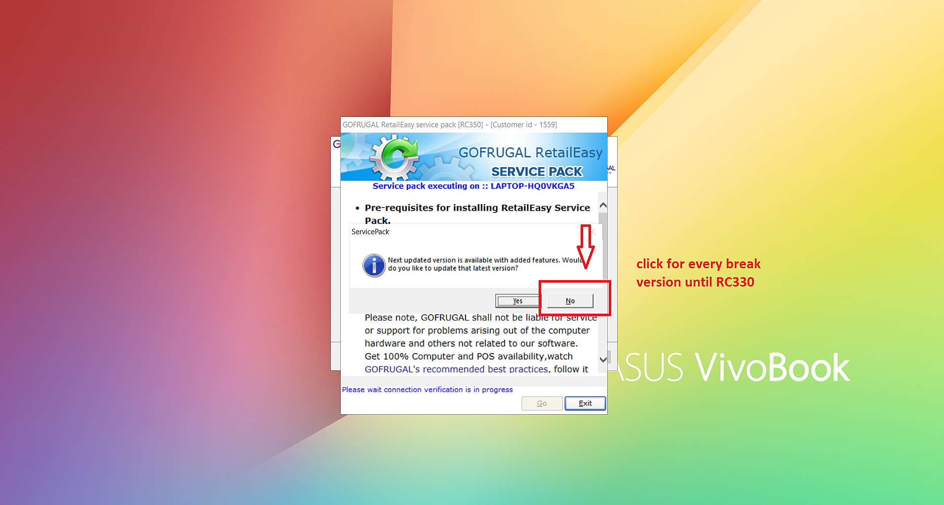 3) Until you reach version RC330, for every version, you will be asked if you want to update to the latest version (i.e., RC 358). Give 'No' and continue with the respective patch version.