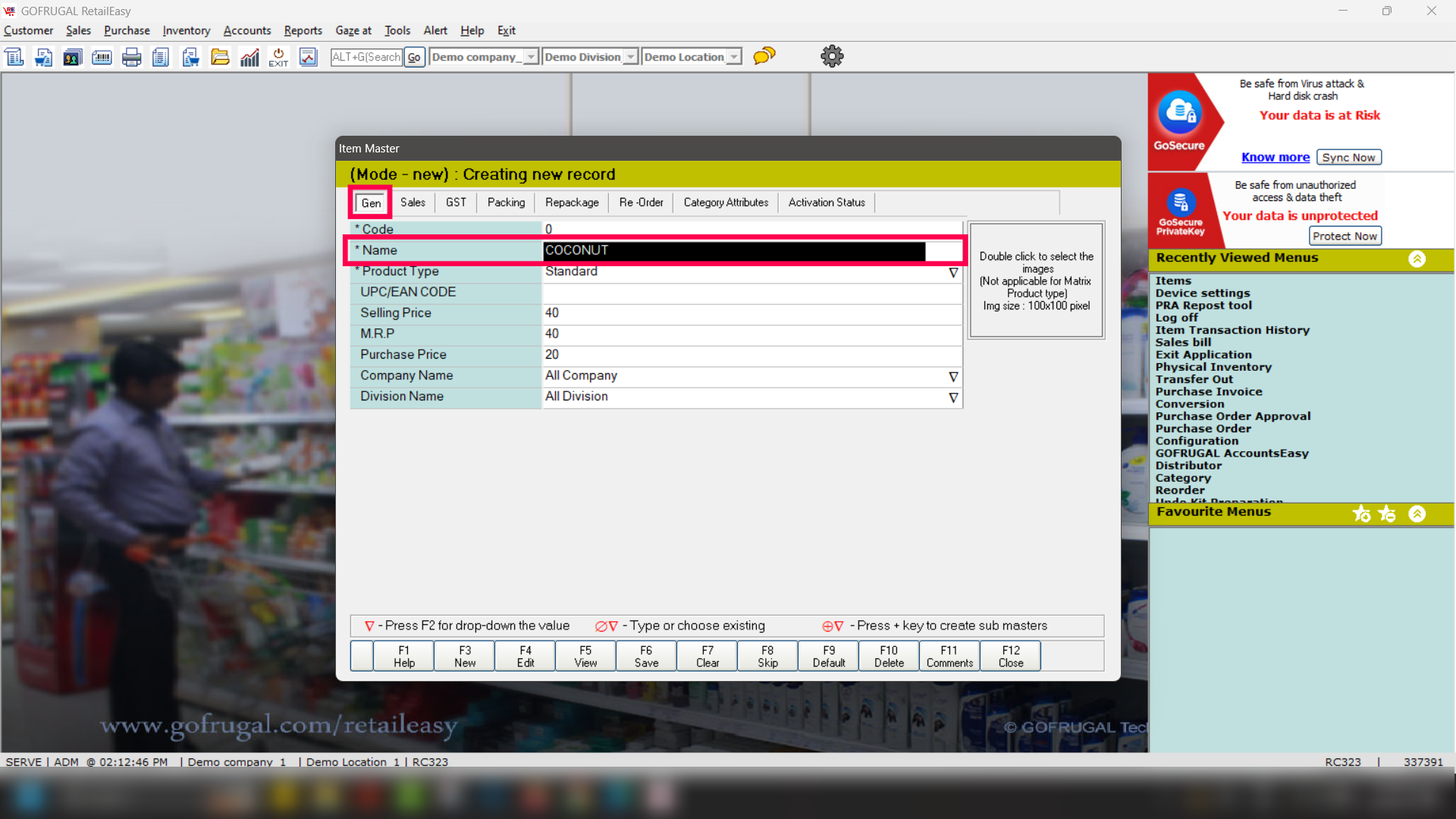 Step 2: In General Tab, put the name as SUGAR LOOSE.