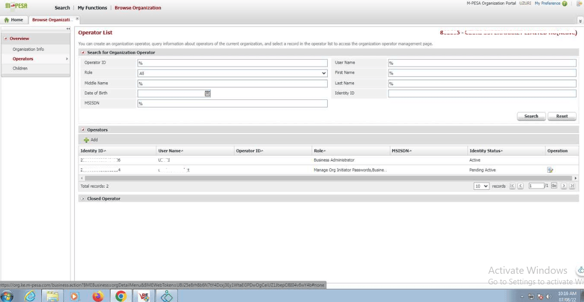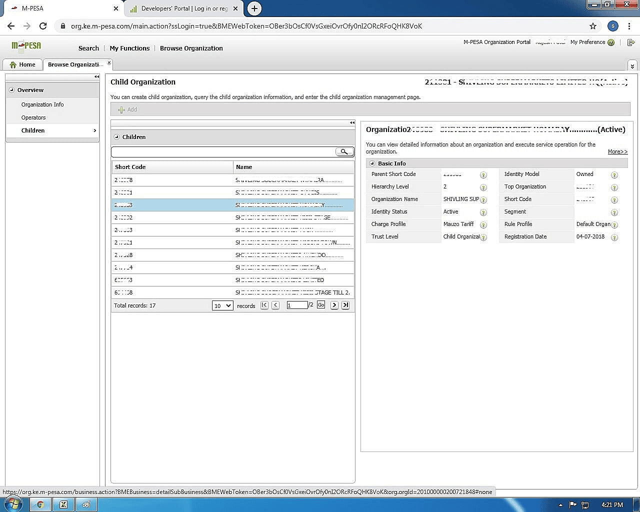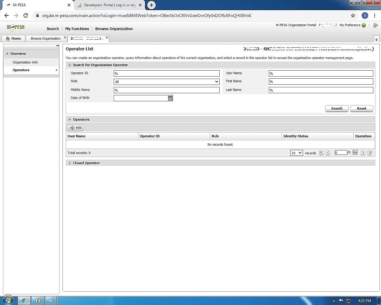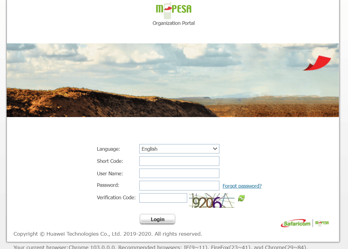 Login to the M-Pesa Organization Portal at https://org.ke.m-pesa.com.