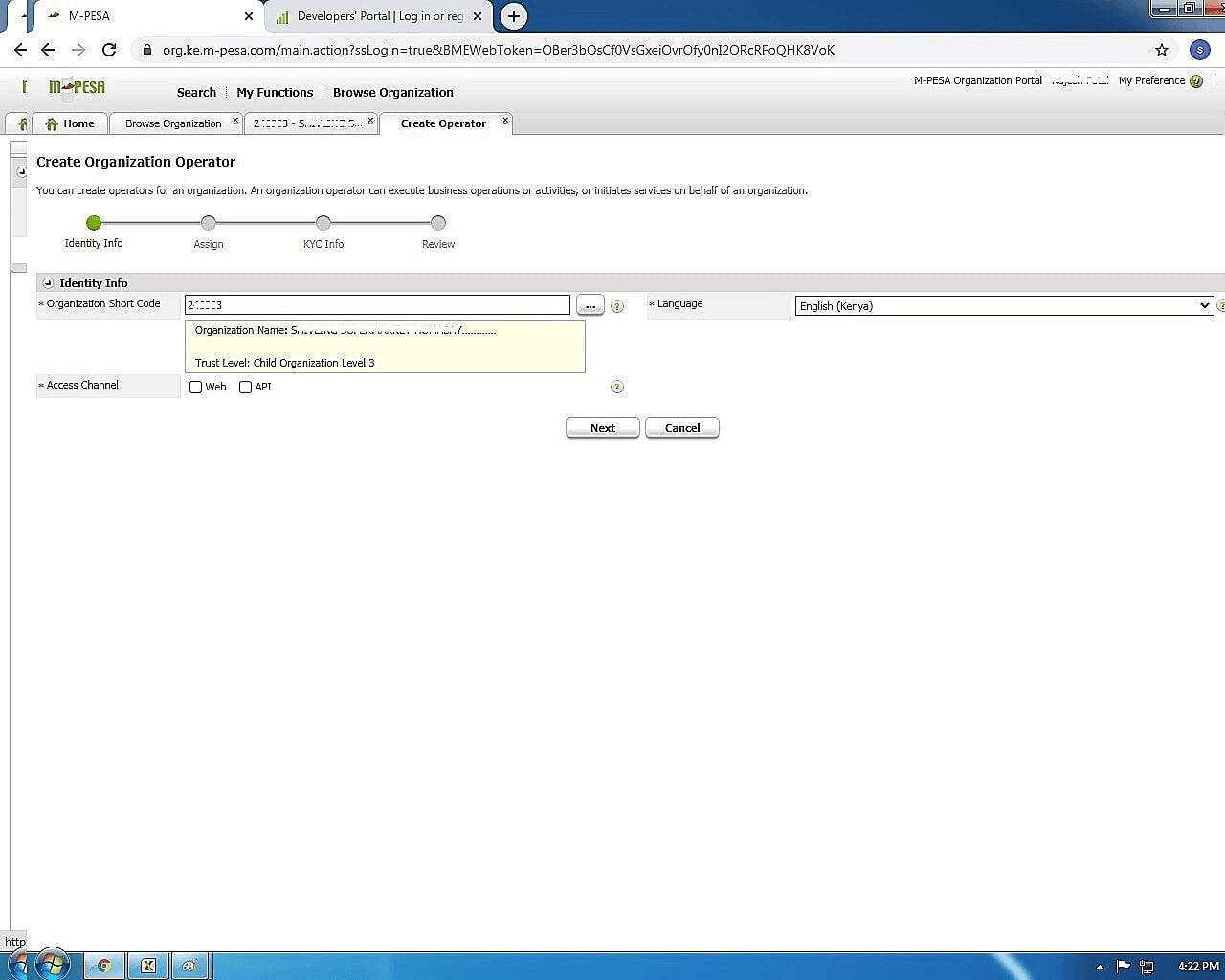 Short Code & Till Number: Create a Short Code and Till number in the M-Pesa Organization Portal.