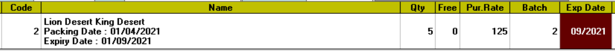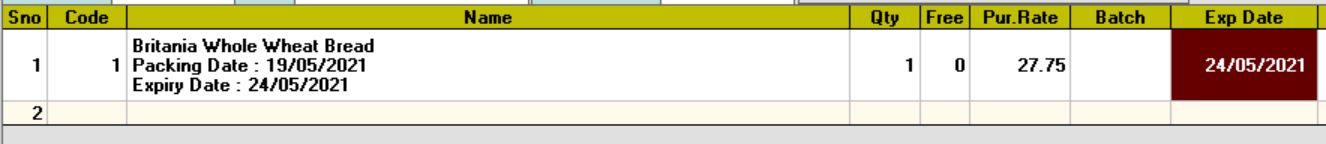 1. Here is a sample screenshot of the purchase screen where packing date input is asked.
