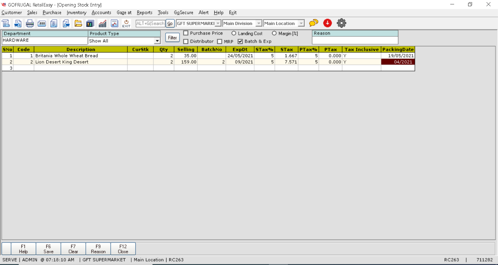 2. In opening stock, user has to enter the packing date in the column provided in the screen as shown below.