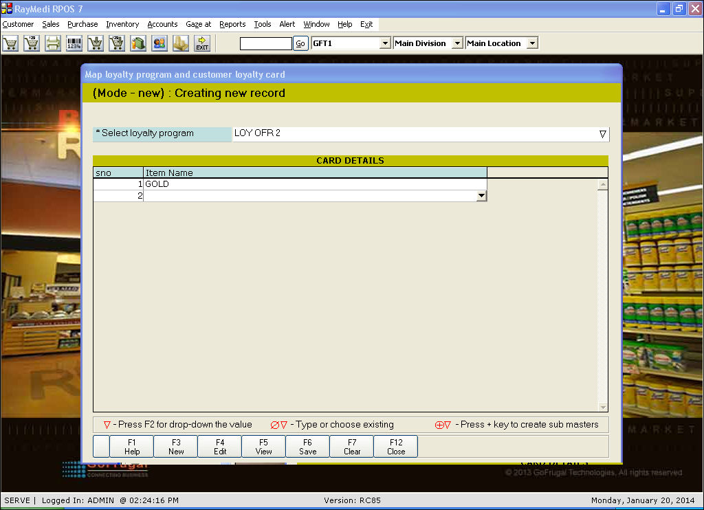 3. In the Item Name field, press ENTER or F2 key to view the list of loyalty cards. Select the loyalty card from the list.