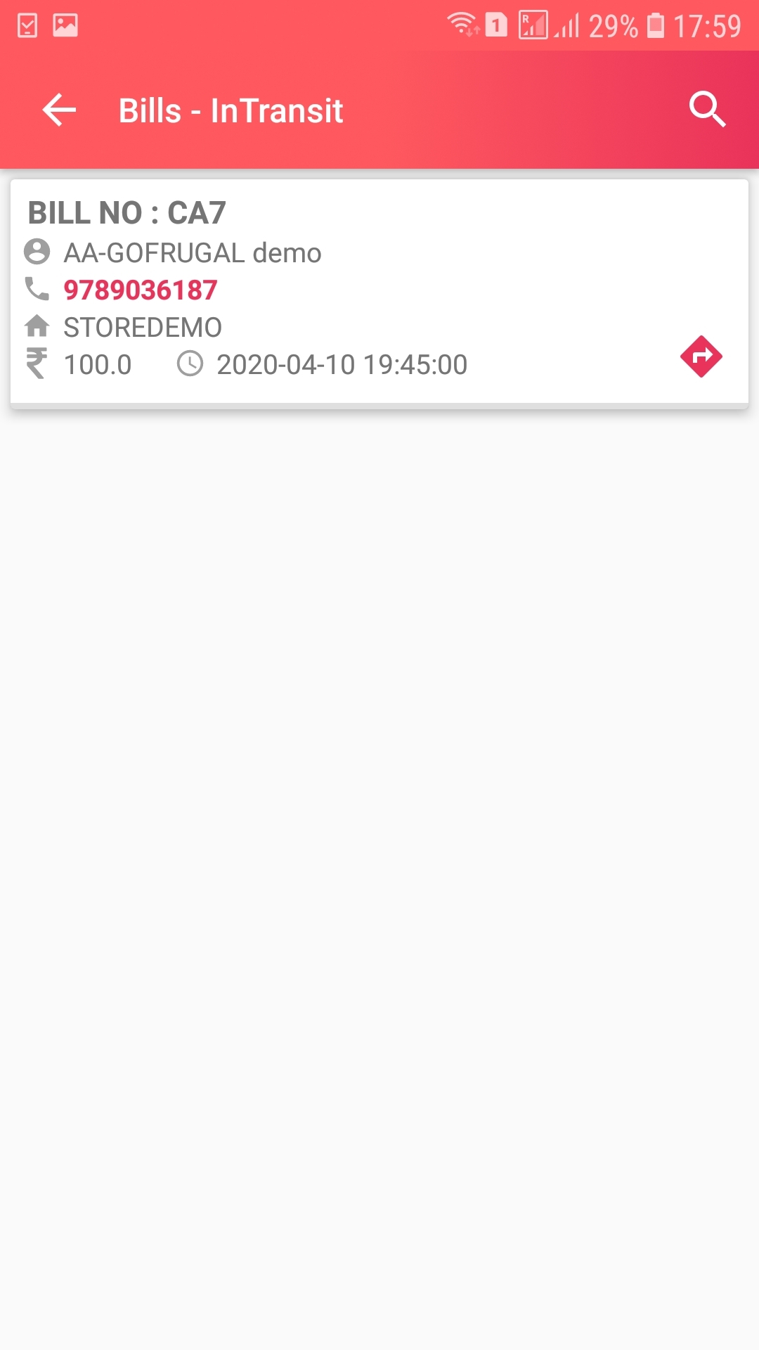 5. Now, the delivery boy can find a delivery bill in "Yet to Pick-up" menu.
