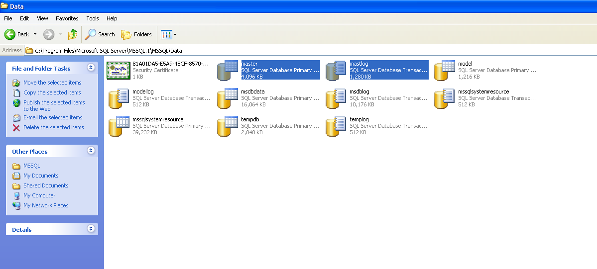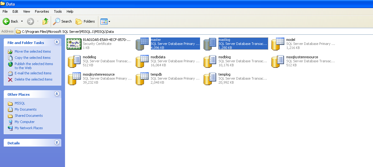 MDF File, you can use the browse button to browse the mdf file of rposauditdb from C:\Program Files\Microsoft SQL Server\DATA.