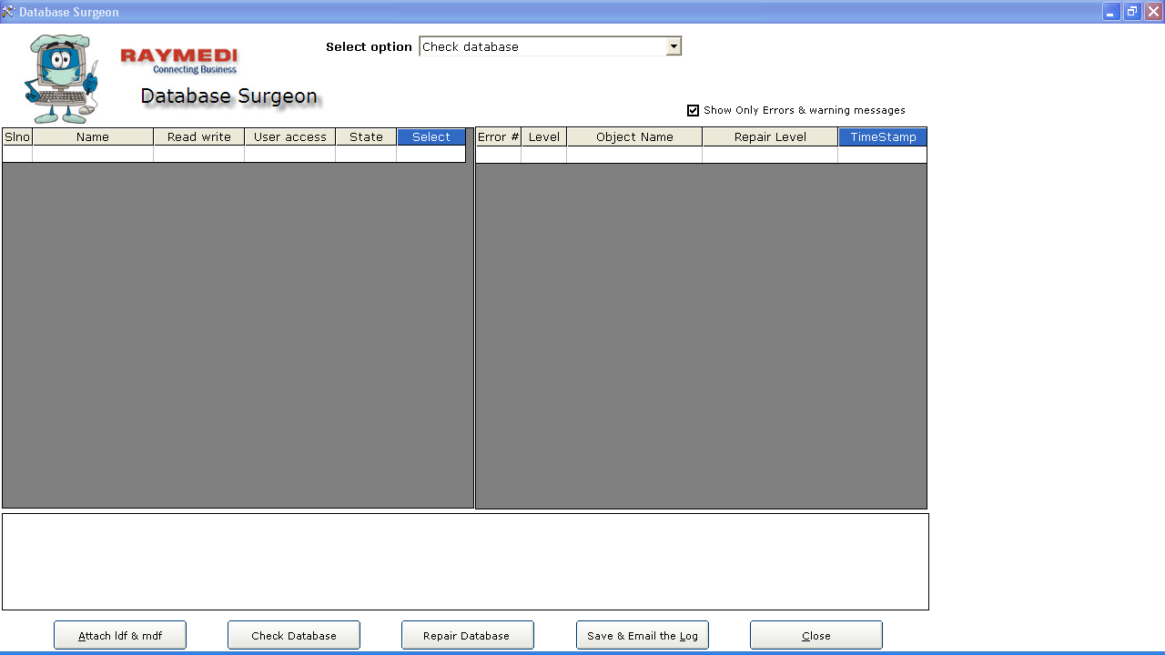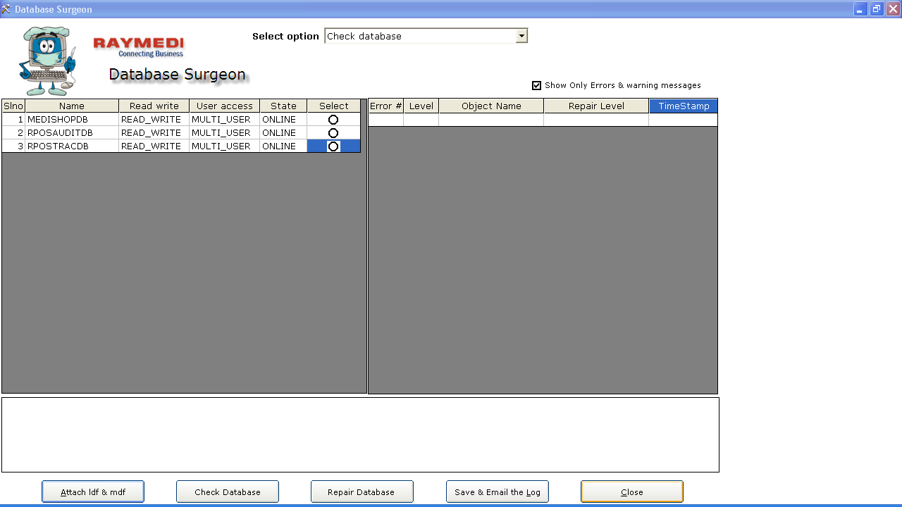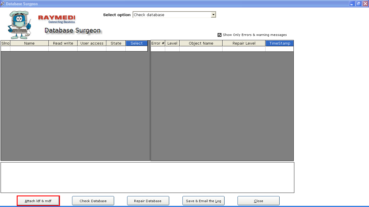 LDF File, you can use the browse button to browse the log file of rpostracdb from C:\Program Files\Microsoft SQL Server\DATA.