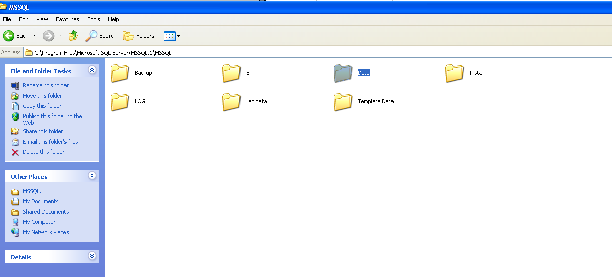 MDF File, you can use the browse button to browse the mdf file of medishopdb from C:\Program Files\Microsoft SQL Server\DATA.