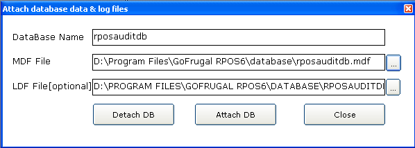 21. Now enter the database name : rposauditdb and click Attach DB button.