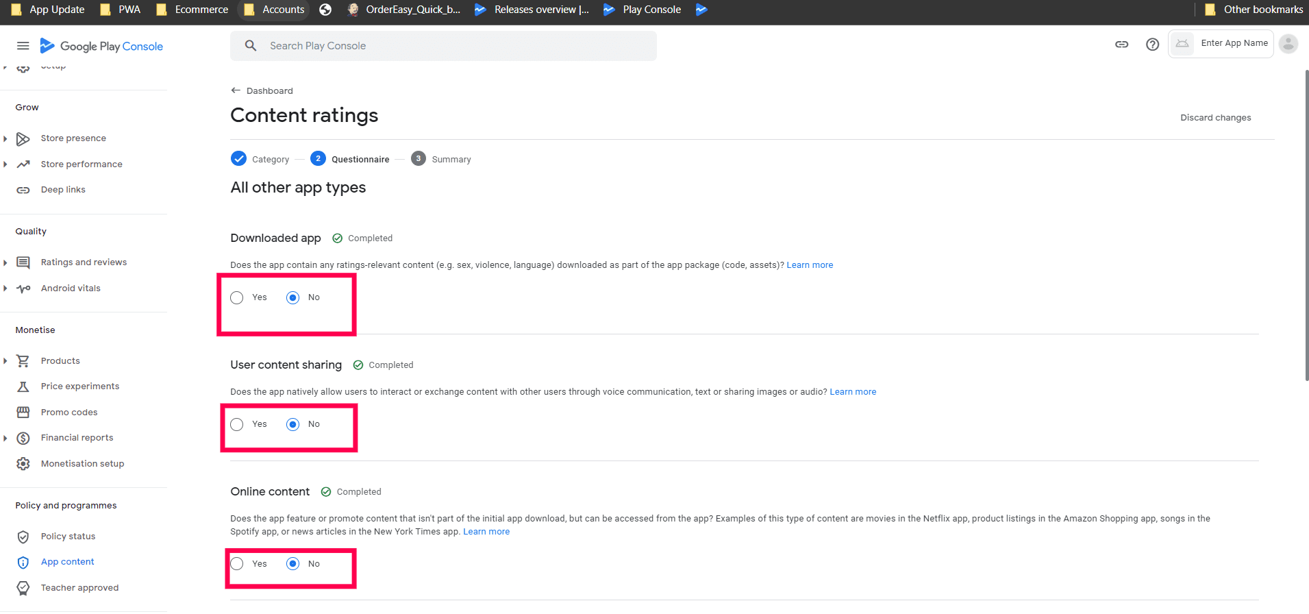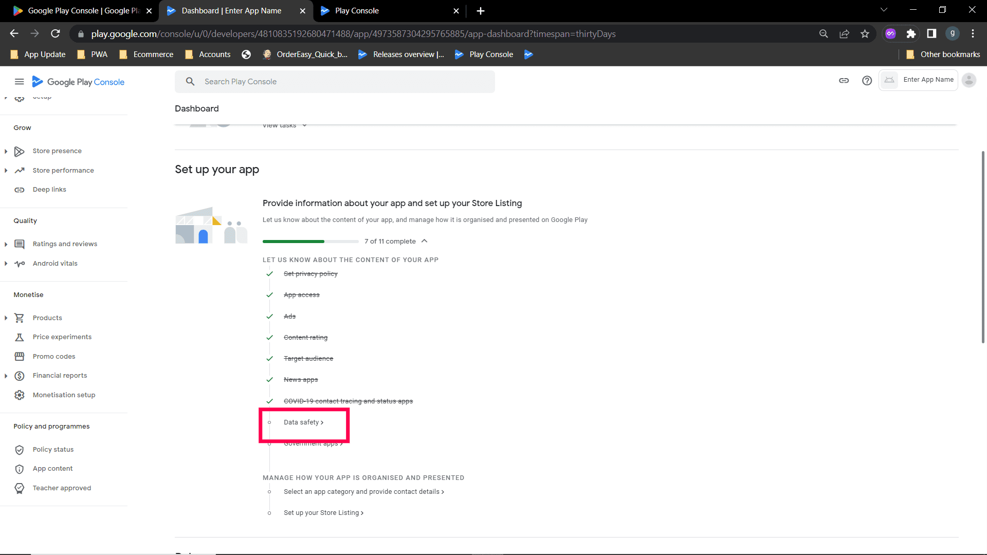Step 2: Select "No my app does not contain ads option" and save. Go back to the Dashboard