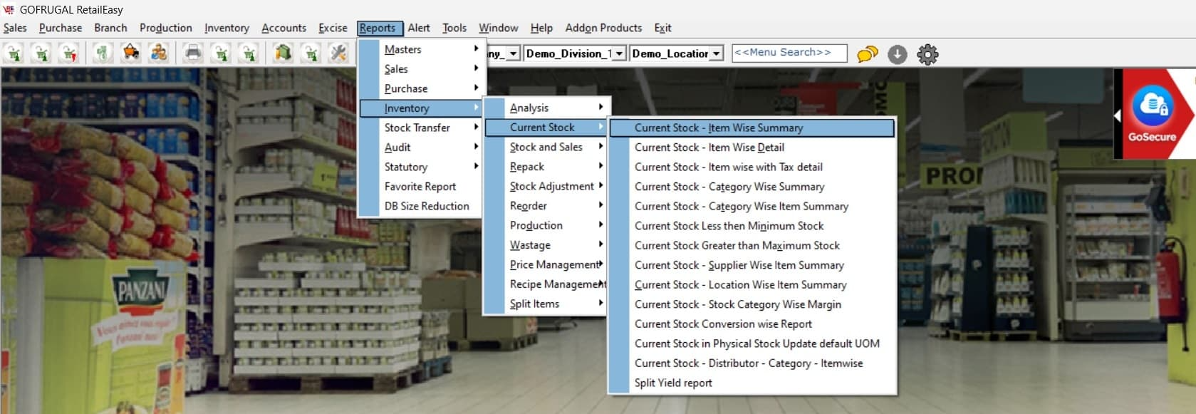 Navigate to Report ID: Current Stock Report - Item Wise Summary.