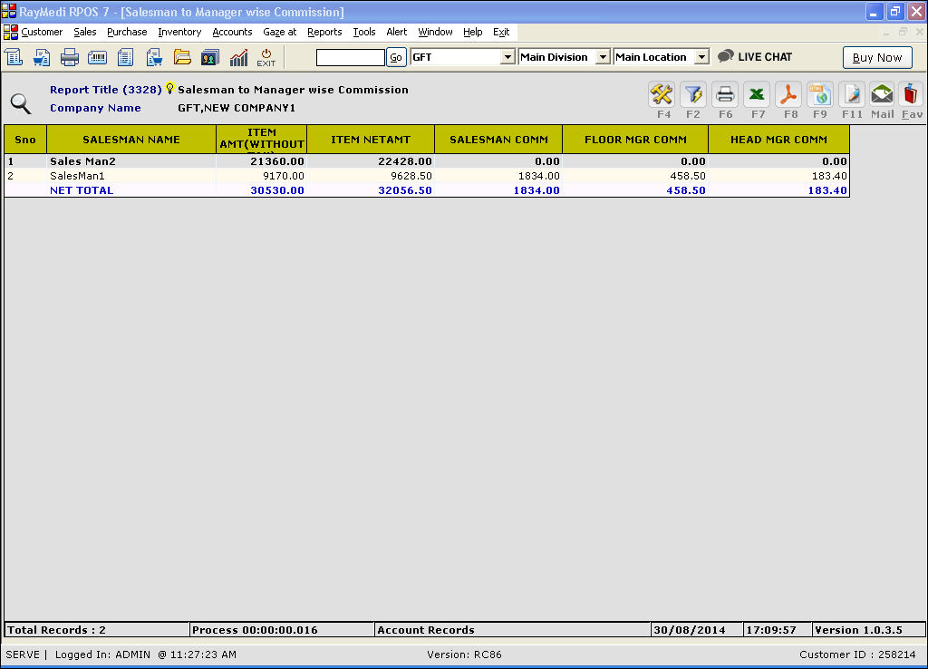 8. Salesman to Manager wise Commission [Report ID: 3328]