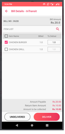 3.Select the items and edit quantity (OR) unselect the item to mark as many quantities for return and click on Deliver.
