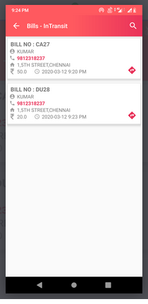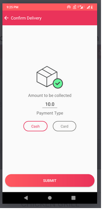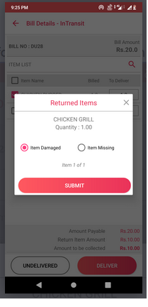 5. The amount will be displayed for delivered items, choose the Payment type and click on Submit.