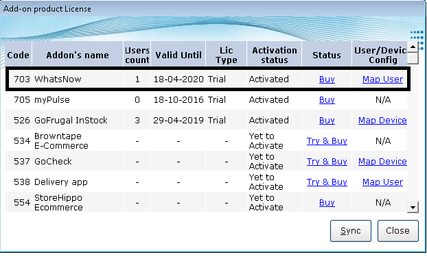 3)After configuring the user in the security manager,please go to help-->About GoFrugal RPOS7-->Add on license-->click on map user which is beside WhatsNow.