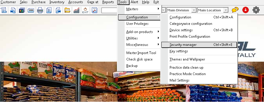1) Login the POS with admin user and go to, tools-->configuration-->security manager-->click the edit button beside the user to whom you want to use WhatsNow.