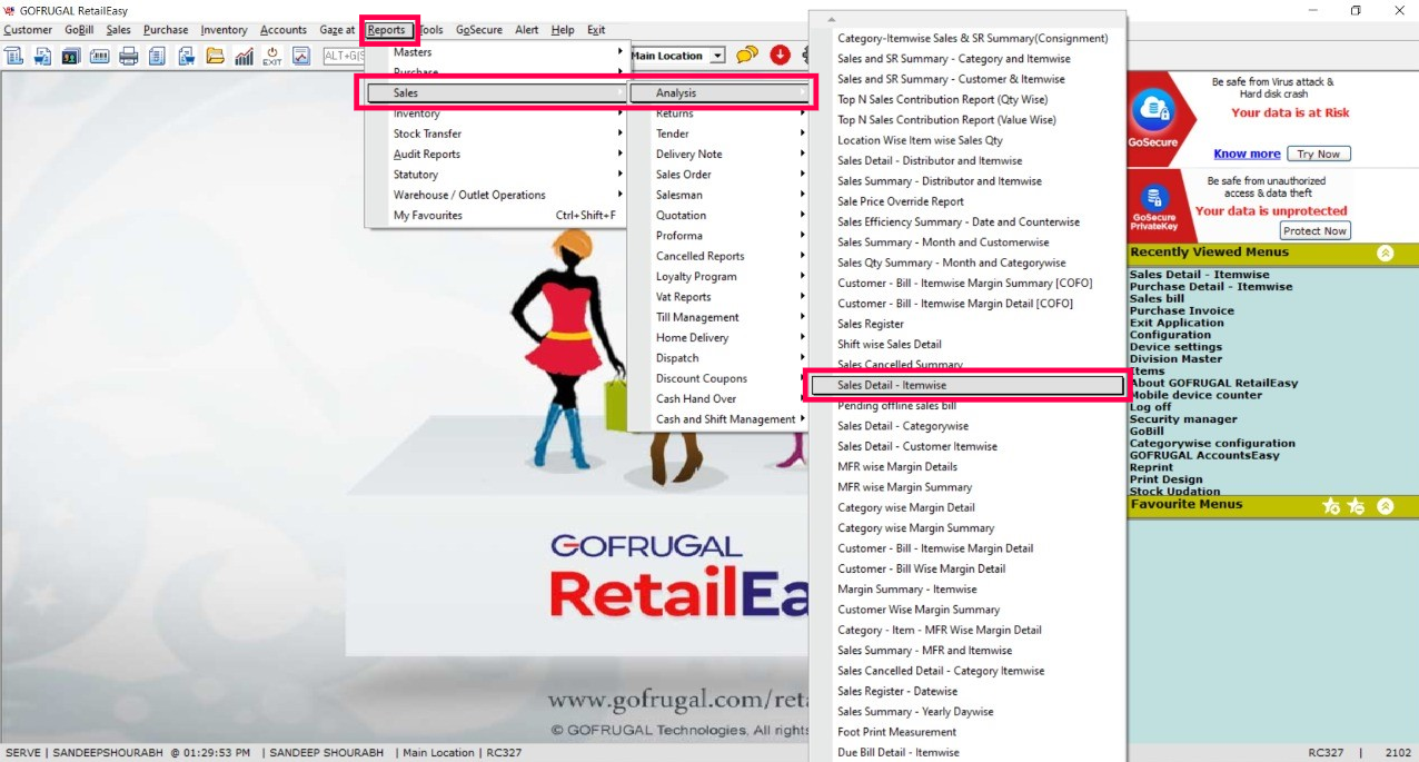 Step 1: Go to Reports > Sales > Analysis > Sales Detail - Itemwise