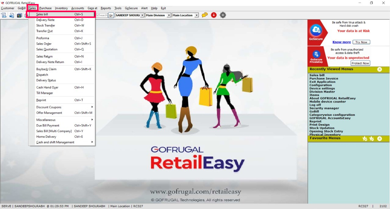 Step 1: Go to Sales > Sales Bill