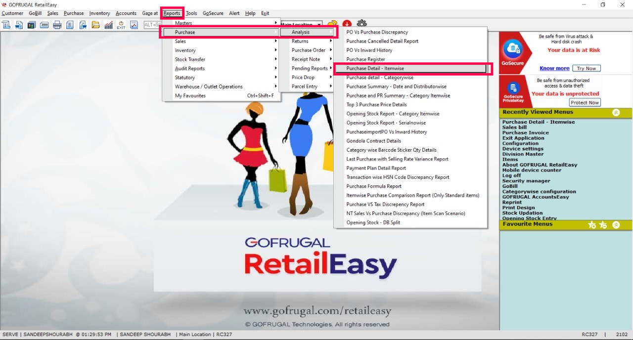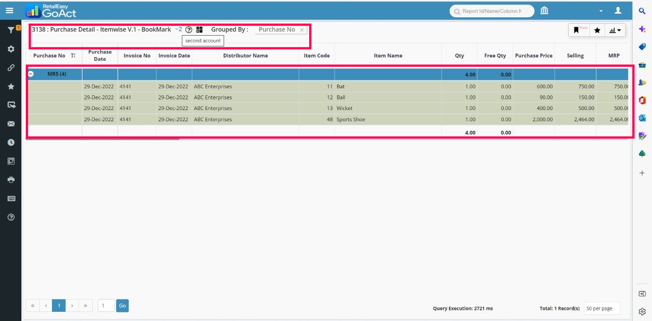 Step 1: Go to Reports > Purchase > Analysis > Purchase Detail - Itemwise