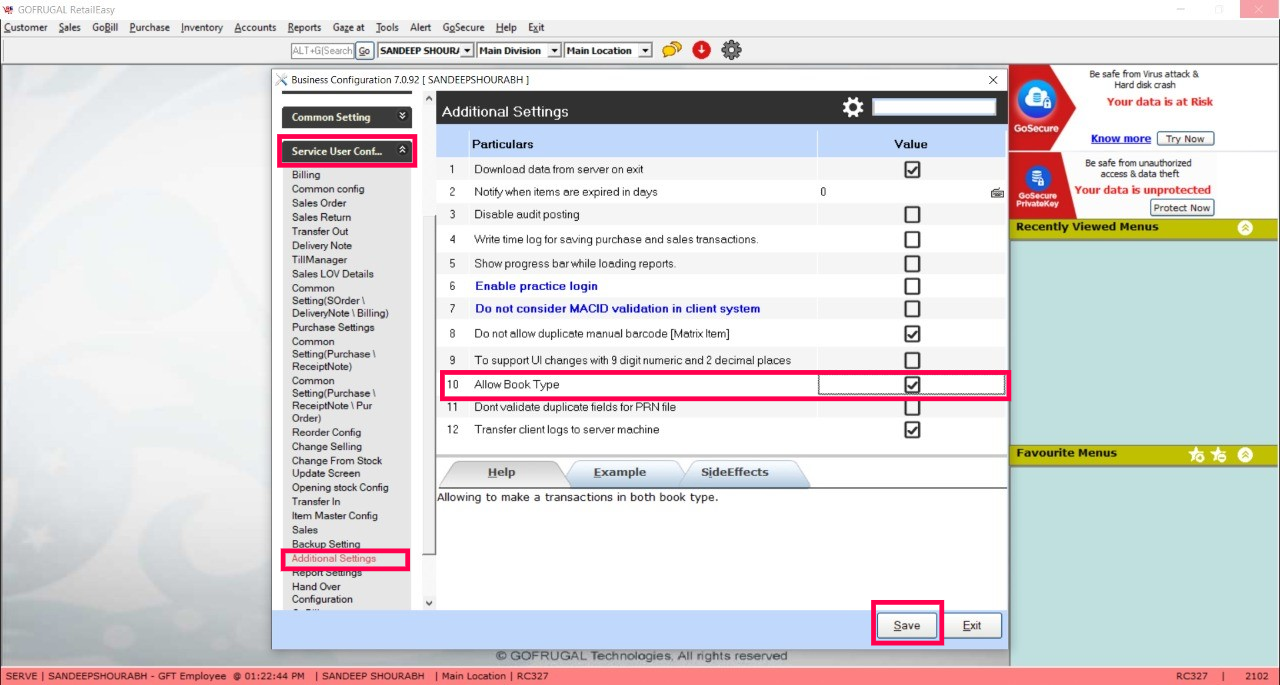 We can maintain two book types in RetailEasy, Book type means keeping separate inventory for an item as first and second account in which the transactions made in the second account will be hidden in reports, GST filing app and so on.