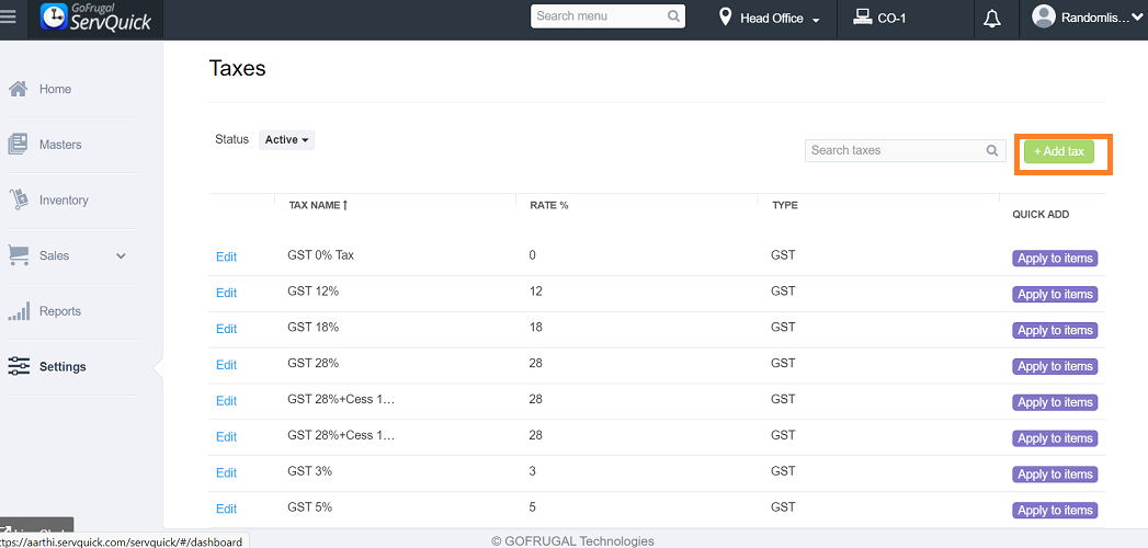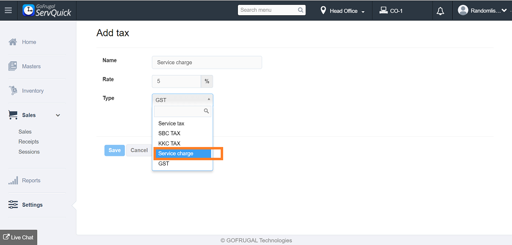 Step 3: Enter the Tax name, tax percentage and choose the tax type. click on save