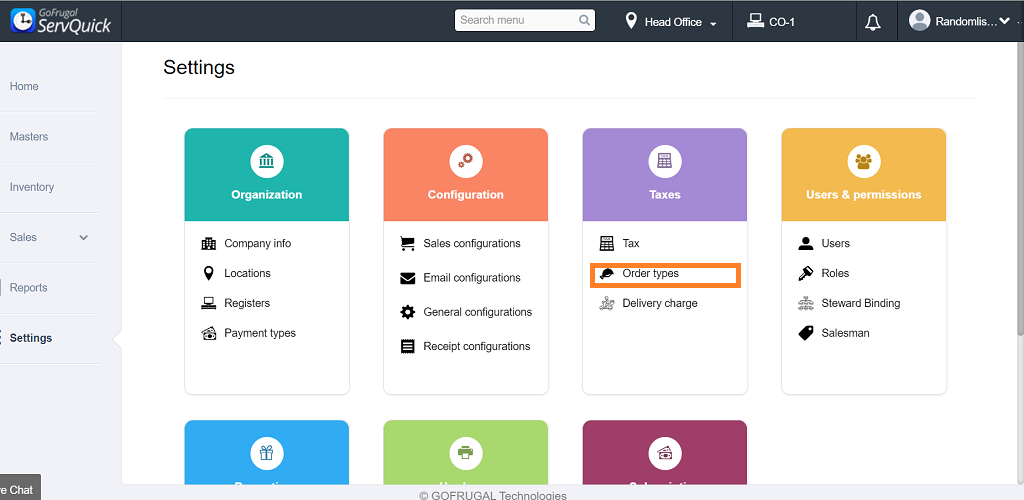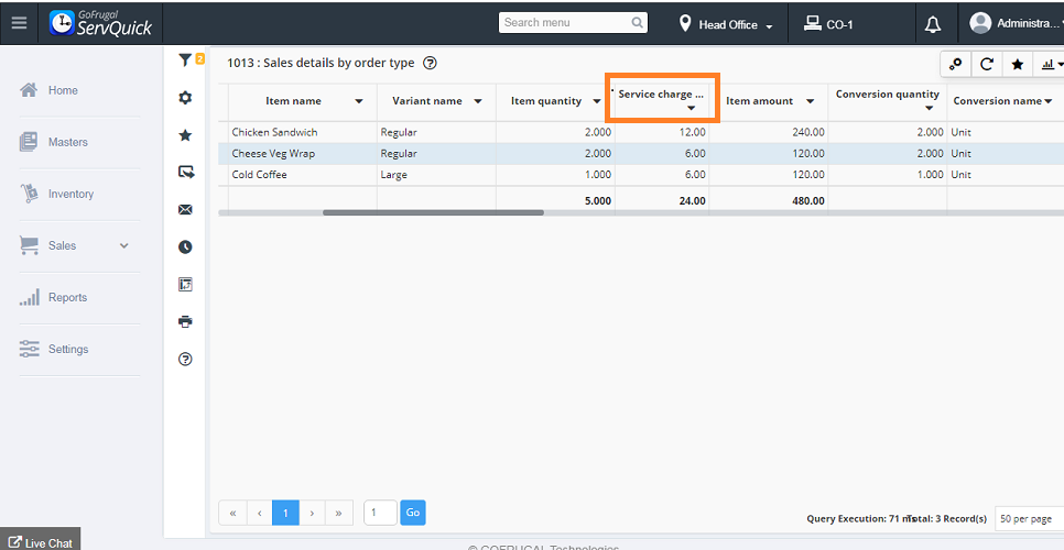 Step 8: Go to Reports ->Sales summary ->sales details by order type
