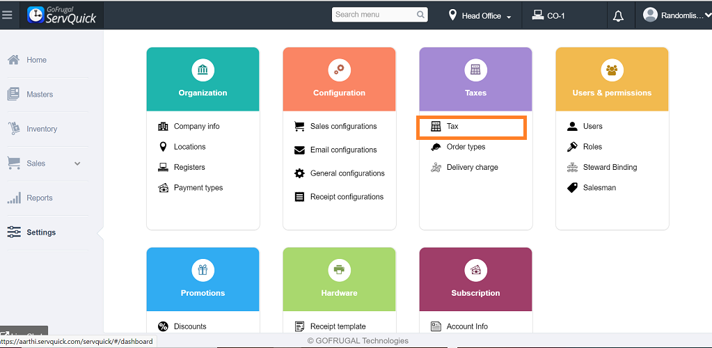Step 1:Go to Setting->Taxes-->Click on Tax