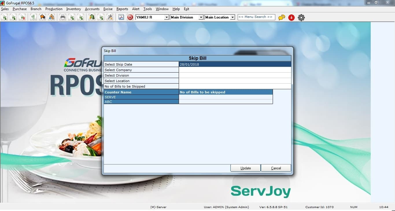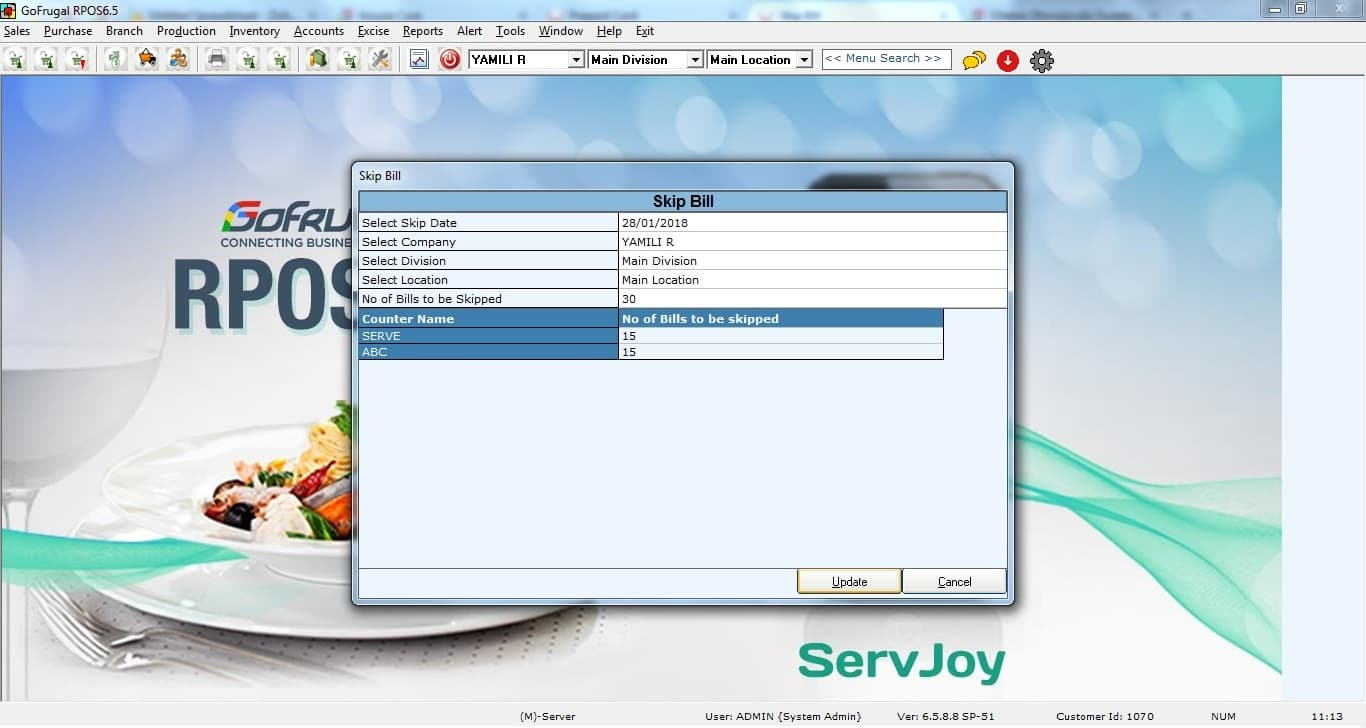 If necessary, allocate the skipped bills to specific counters. This will help keep track of sales by different counters in the system.