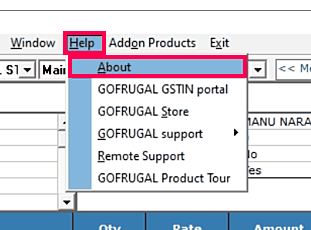 Access the help menu by opening GoFrugal RPOS 6.5, then click "Help" in the top menu bar.