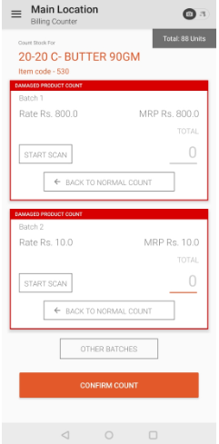 ->if item is counted manually and entered in the mobile app, the the expired items could be entered under the damaged stock