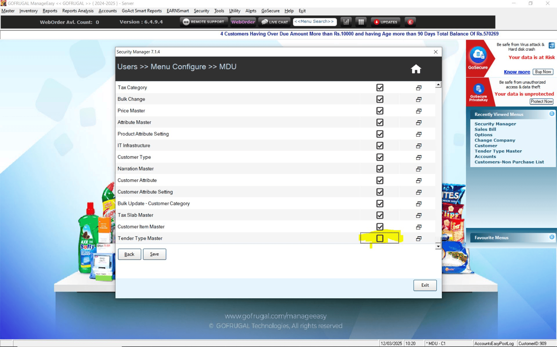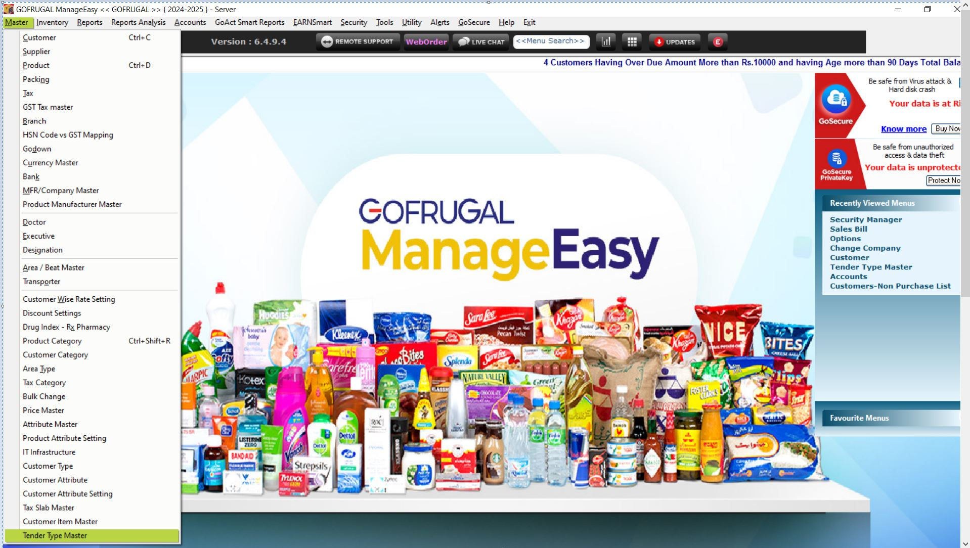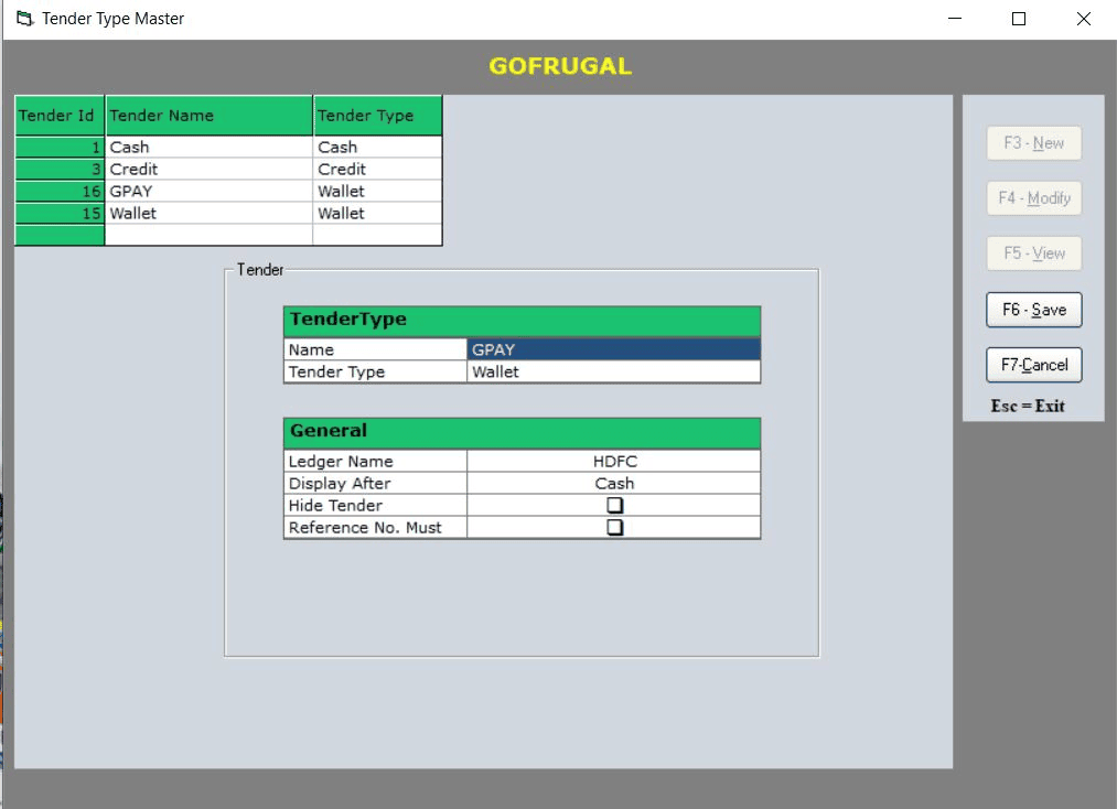 The tender type master in Gofrugal ManageEasy refers to type of payment made by the customers on purchasing the products. It manages different payment methods such as Cash, Credit, Card, GPAY, Etc. which ensures accurate transaction processing and seemless payment handling.