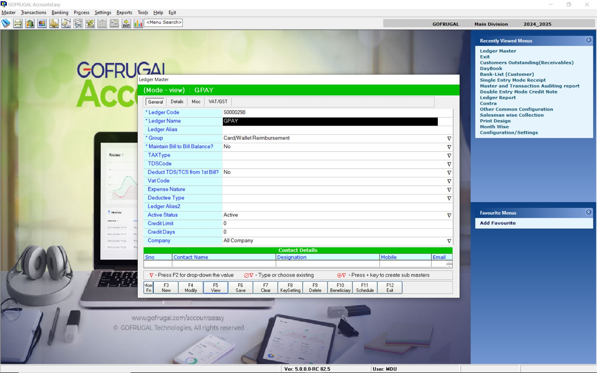Note: Once the Tender master is created, it will be synced in the AccountsEasy ledger under the group Card/Wallet Reimbursement.