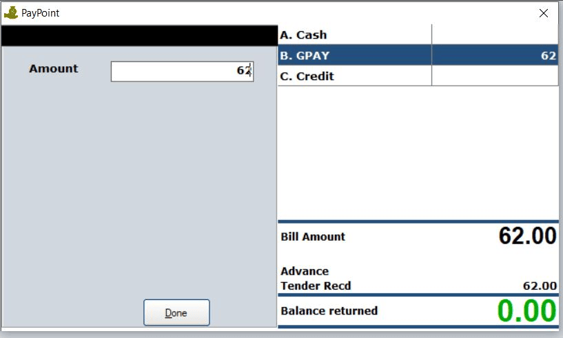 The Paypoint window will popup, where you can enter the amount in the tender you wish to enter.