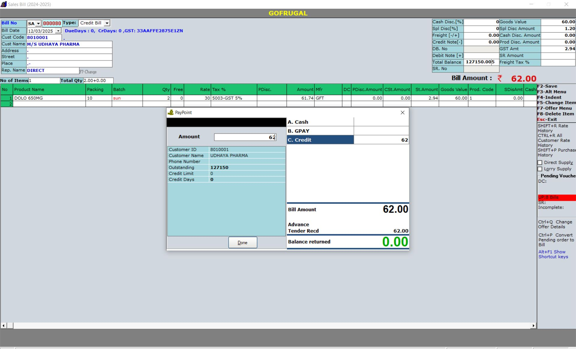 To proceed with billing, in then ManageEasy application, go to Inventory Sales Bill> make a sales bill and press F6 to save.