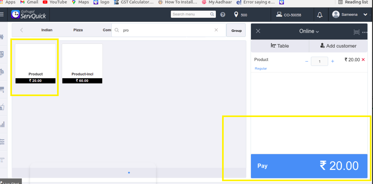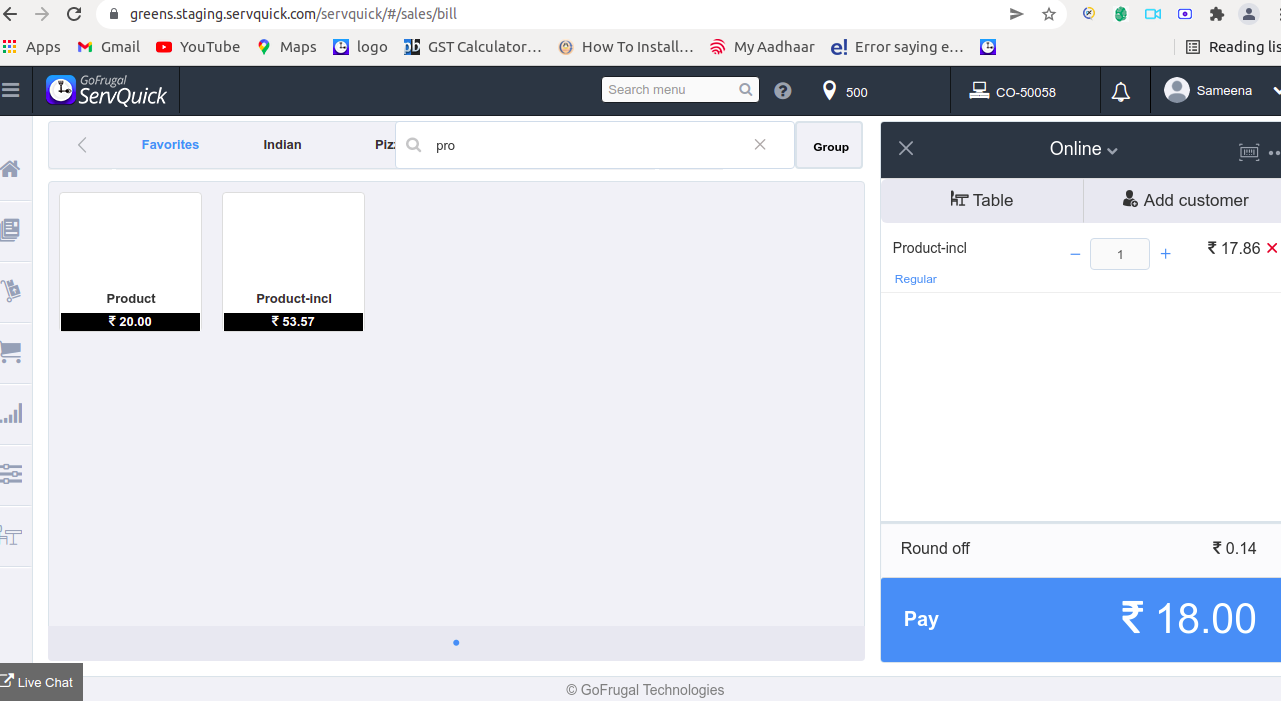 Purpose:- The purpose of GST calculation based on product type is to make difference for service type item as tax exempted in both Servquick POS and for online orders which were receiving from aggregator.