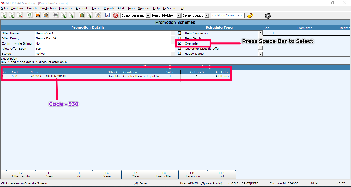 1)This offer can only work for Item wise Offer not use for Category, Group or Bill wise offers.