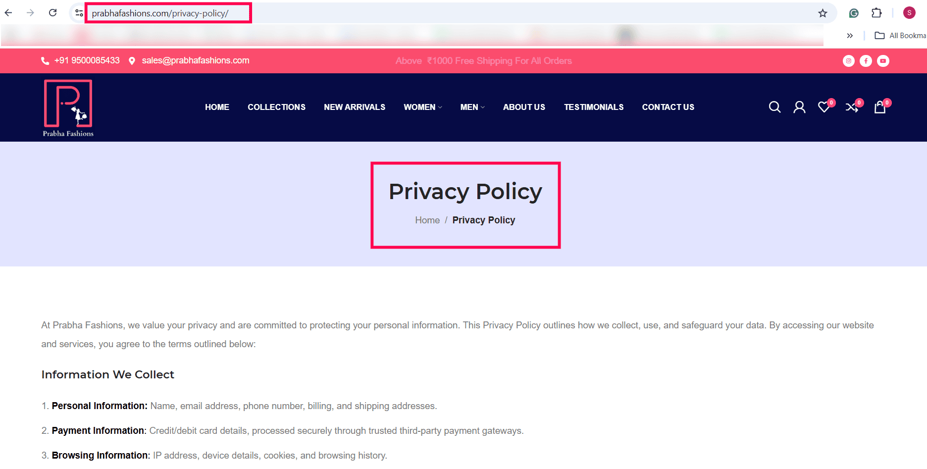 Privacy Policy Page: The website must include a Privacy Policy page to comply with data privacy regulations.