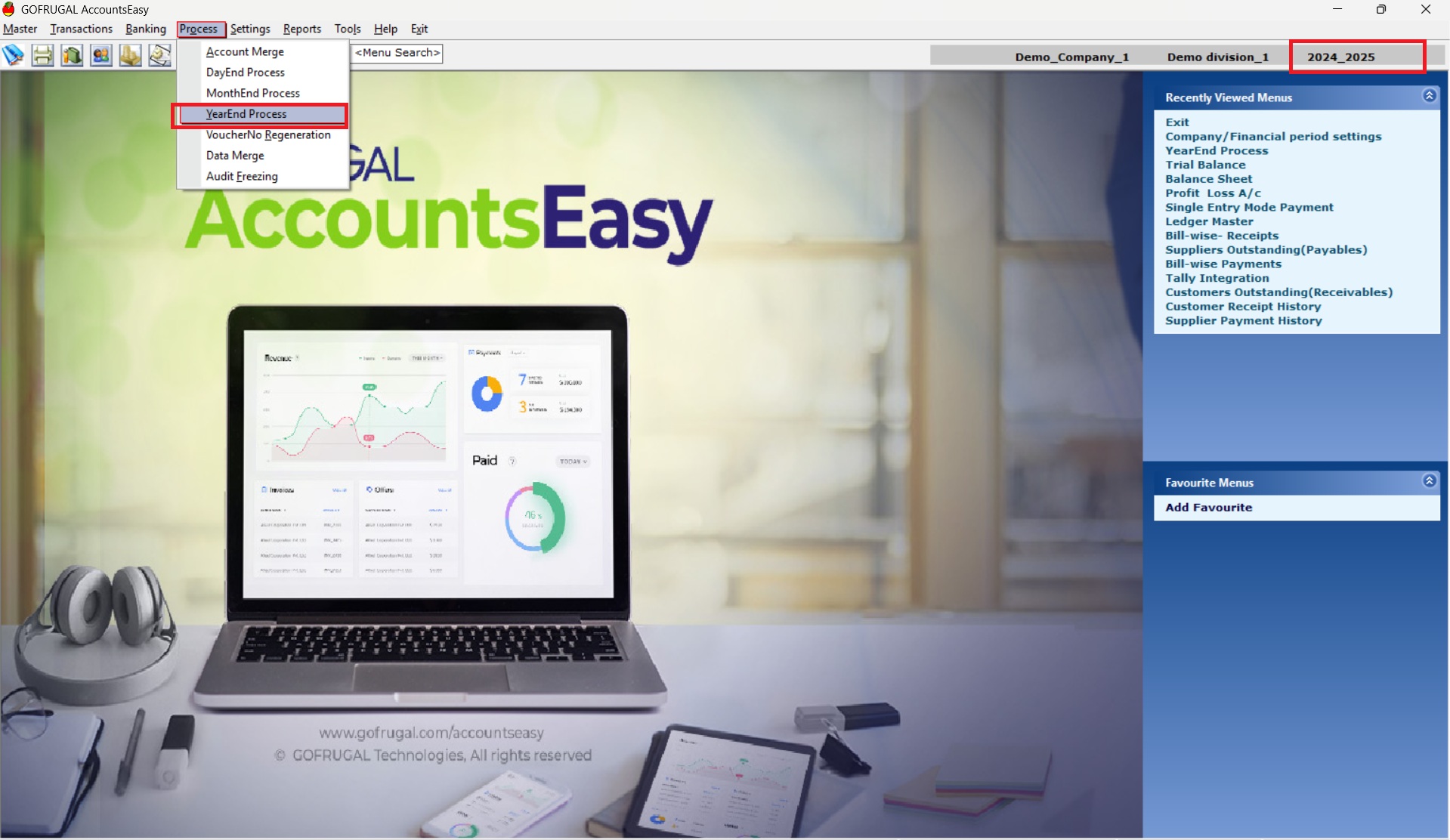 How to do year end process in AccountsEasy?