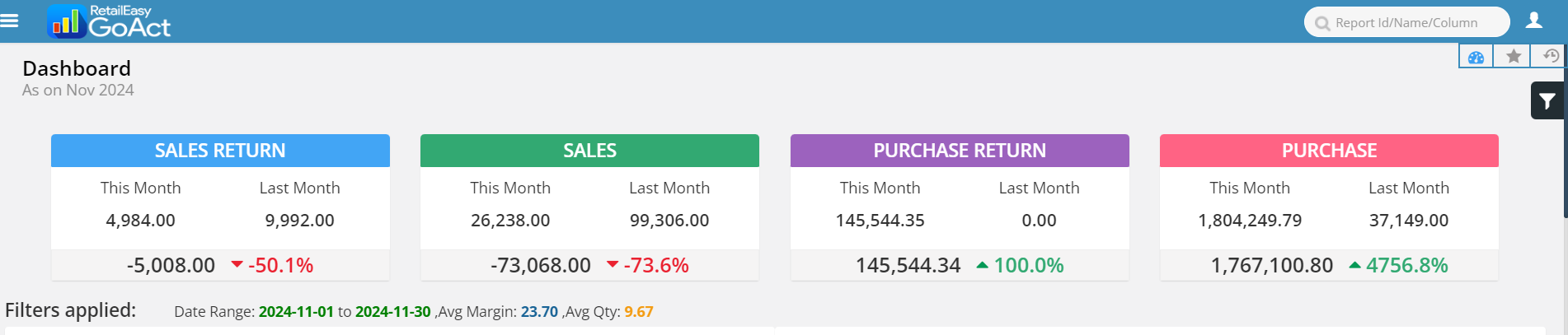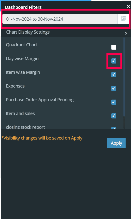 Additionally, you can also view the report below, which includes details such as daily margins, expenses, and pending purchase order approvals.