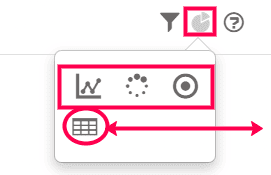 Within this analytical chart, you will find three choices: filter, chart display, and change chart type, as well as a description of the chart.