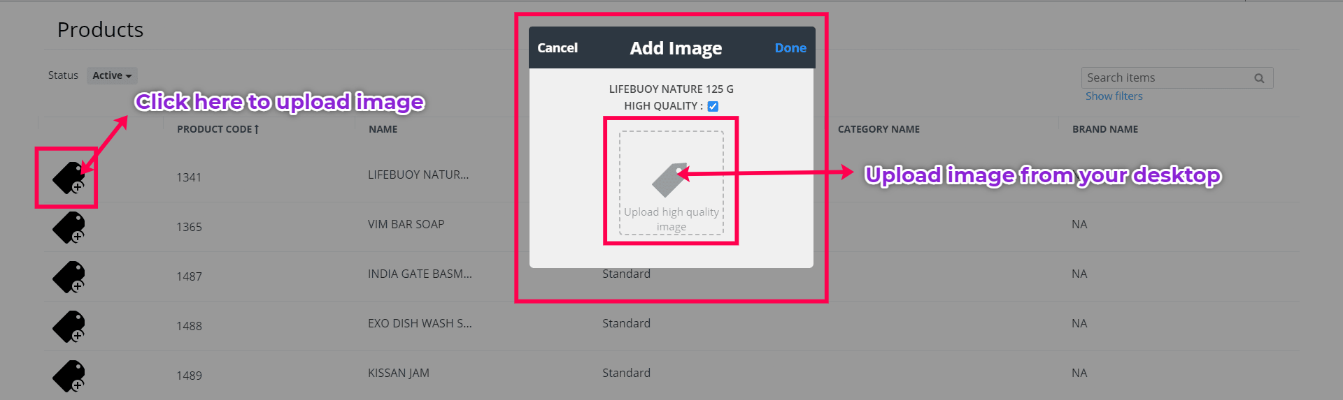 Easily upload images for items and categories.