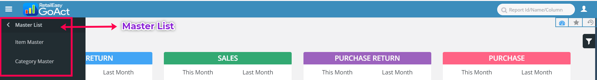 Master List: The Master List includes both Item Master and Category Master.