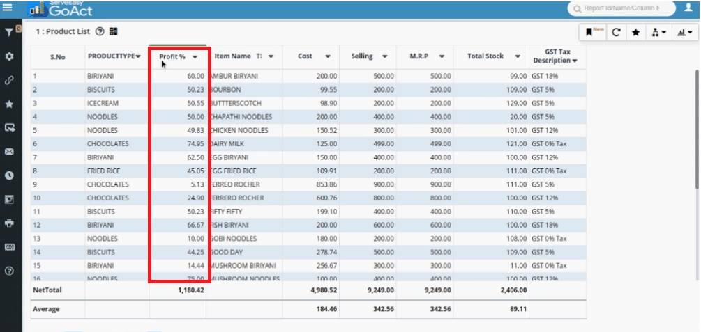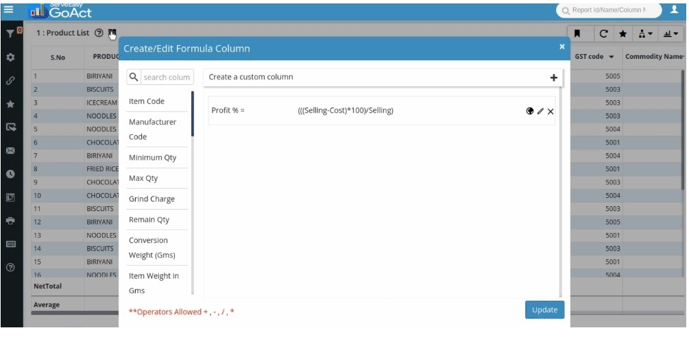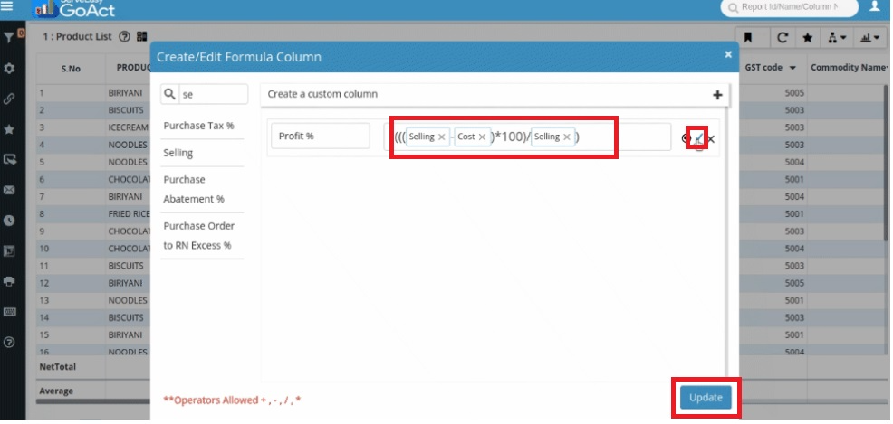 Example: Suppose you want to display the actual profit percentage in a report. Instead of manually calculating it each time, you can create a Formula Column.