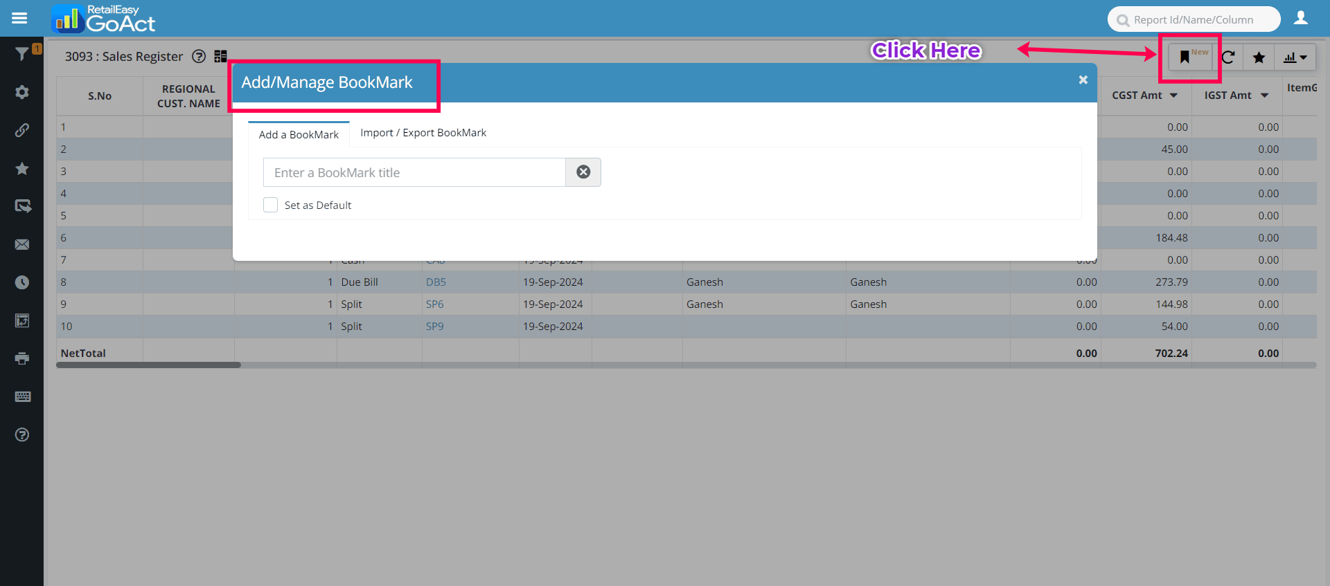 This guide provides step-by-step instructions for creating and managing bookmarks in reports. Bookmarks enable you to save report configurations with specific filter settings for quick access and sharing across different outlets.
