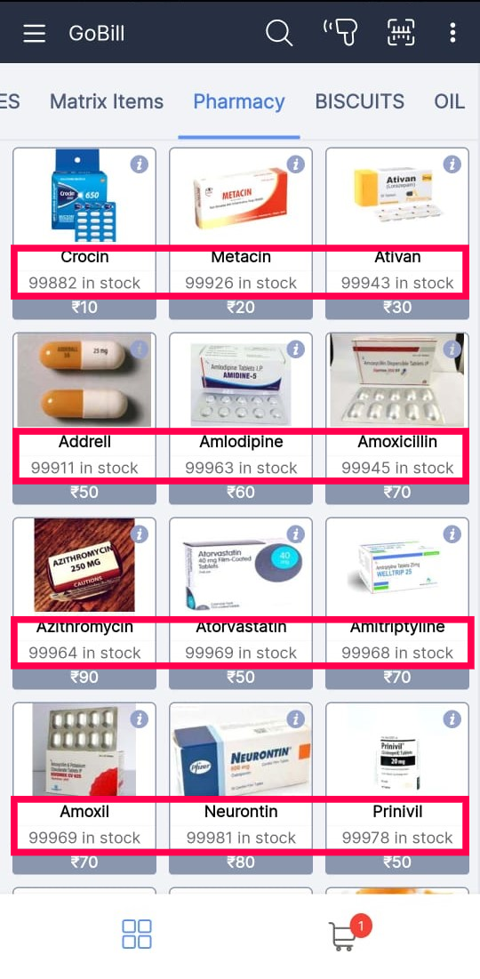 Step 3: Open GoBill Mobile Sales screen - Check for the item stock