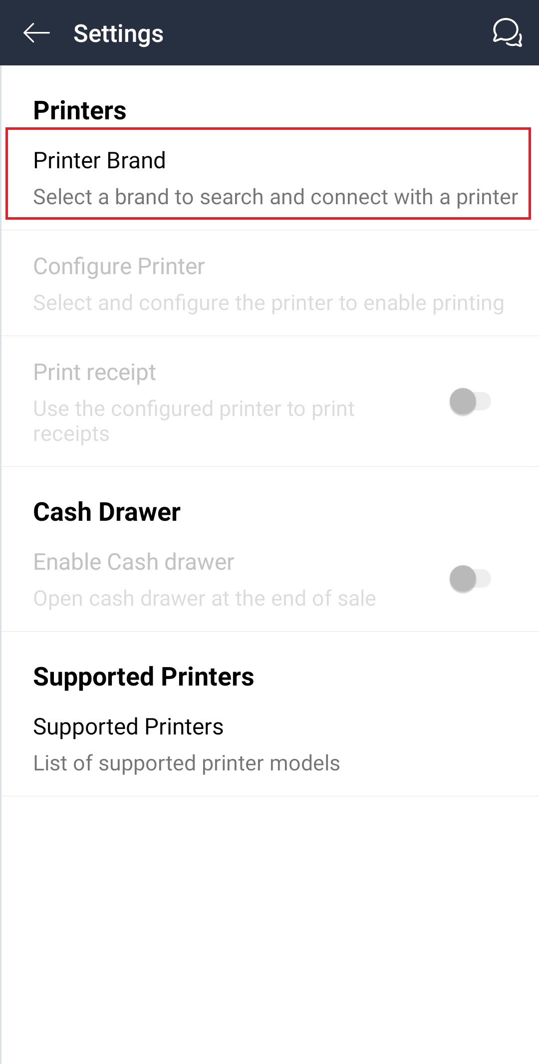 Step6: Click on Supported printers to view the supported printers of SellQuick
