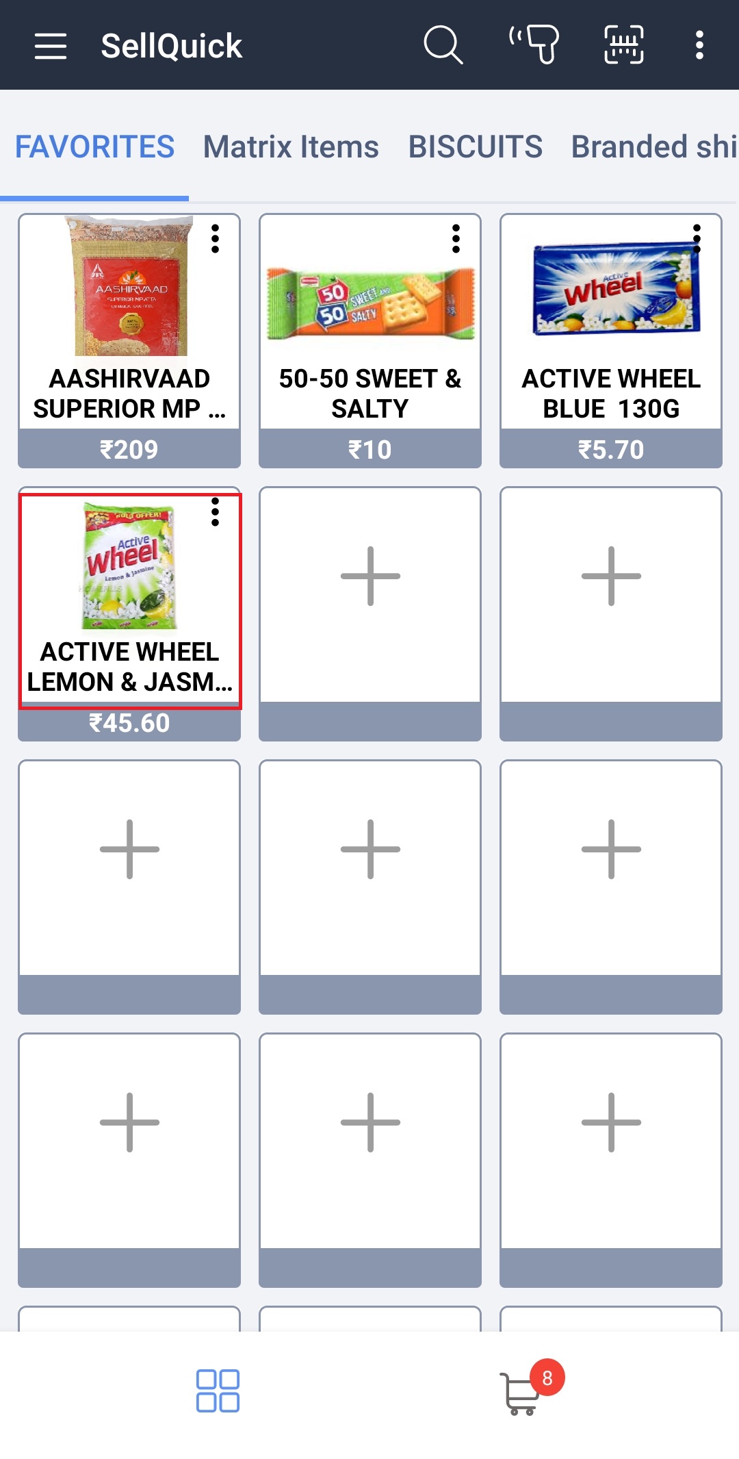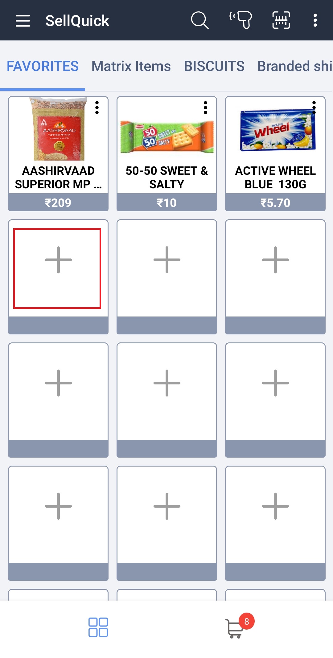 Step1: In the main screen of SellQuick, Click on the "+" icon to select and add any item from the item list.